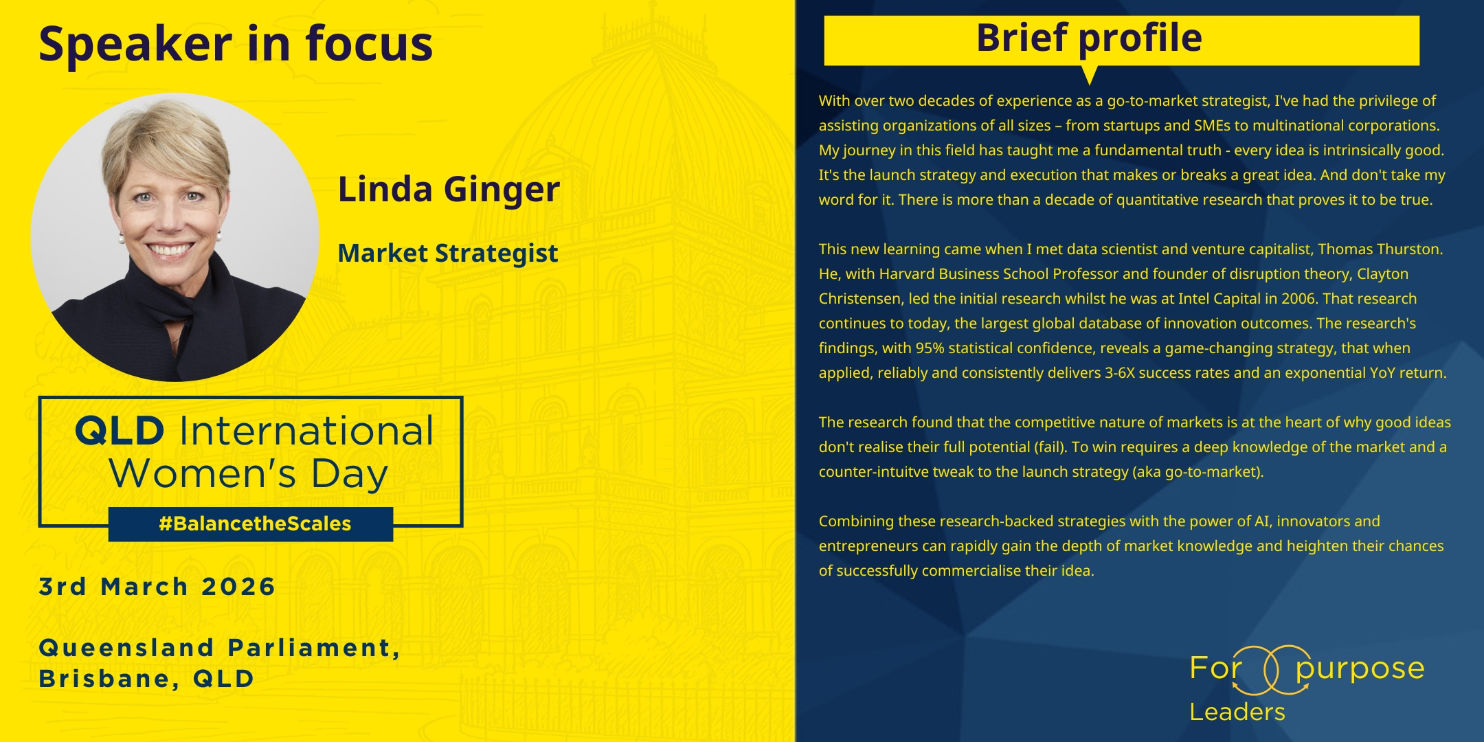 We are delighted to announce Linda Ginger as a featured speaker at the upcoming QLD International Women’s Day – Parliamentary Breakfast Event 2026.